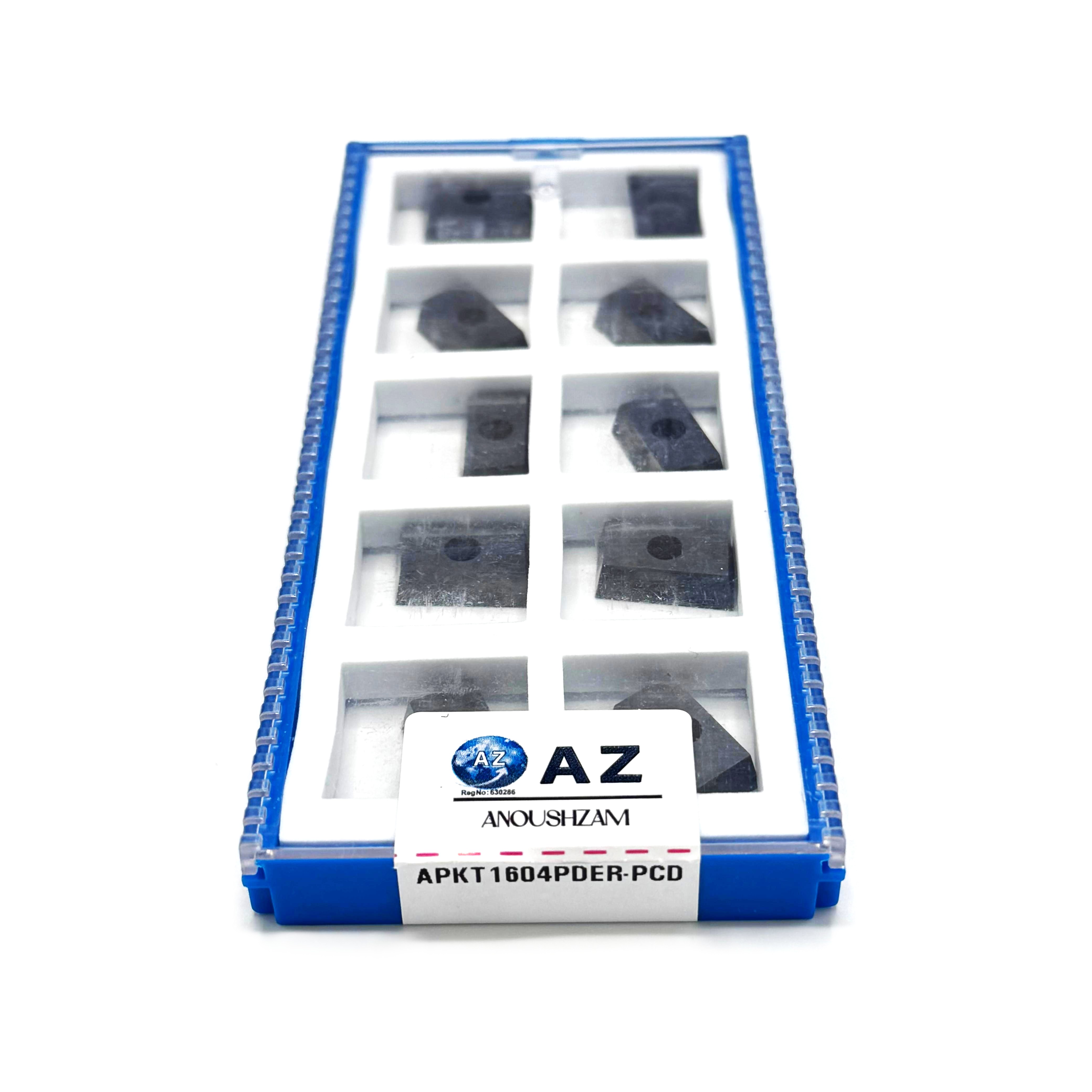 اینسرت PCD برند AZ مدل APKT1604PDER مختص آلومینیوم و فلزات رنگین مانند برنج و مس با بالاترین کیفیت و ضمانت برای افراد خاص که سطح کار را با کیفیت آیینه میخواهند مناسب ترین میباشد با ضمانت بهره برداری بیش از 40% از رقبای هم قیمت.
