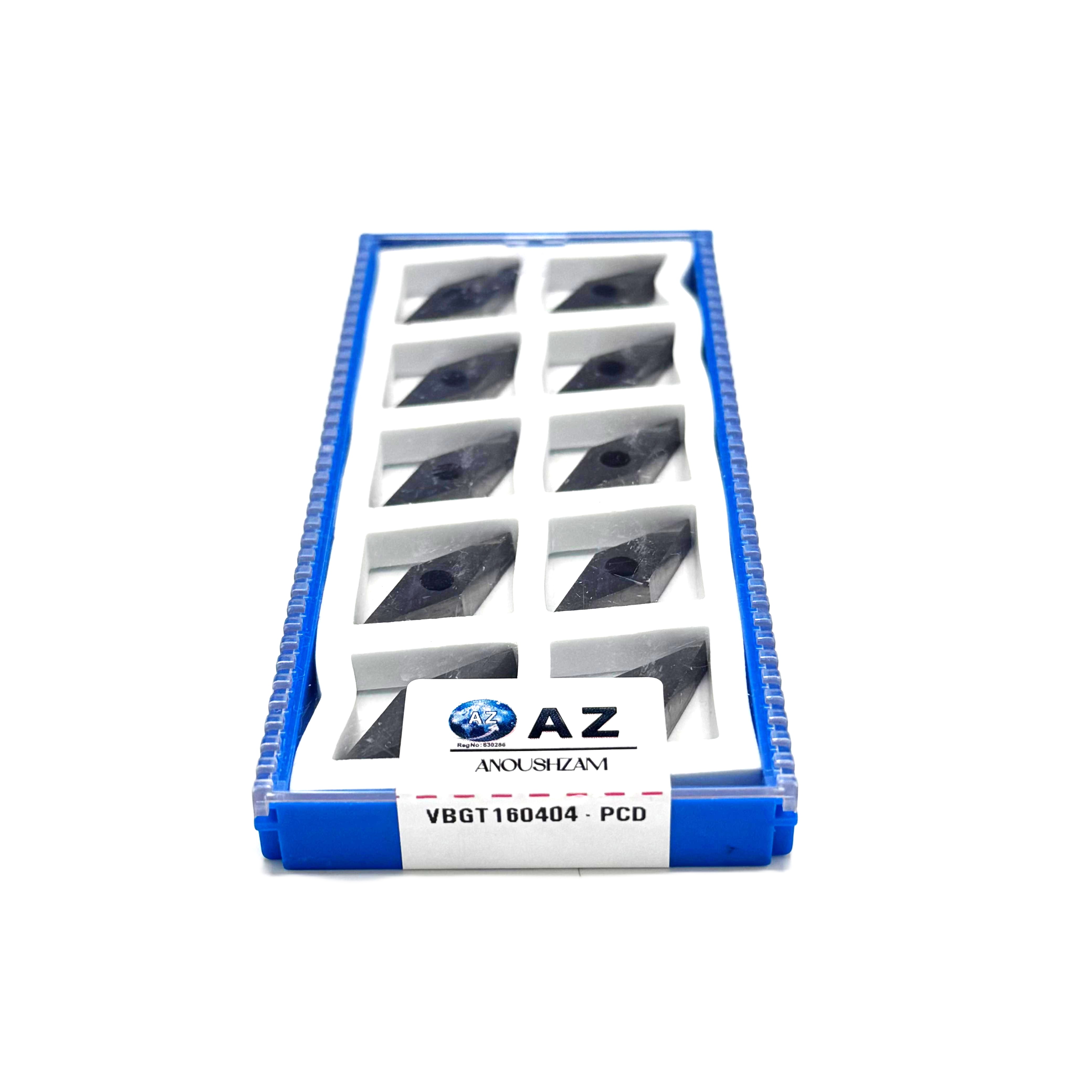 اینسرت PCD برند AZ مدل VBGT160404 مختص آلومینیوم و فلزات رنگین مانند برنج و مس با بالاترین کیفیت و ضمانت برای افراد خاص که سطح کار را با کیفیت آیینه میخواهند مناسب ترین میباشد با ضمانت بهره برداری بیش از 40% از رقبای هم قیمت.
