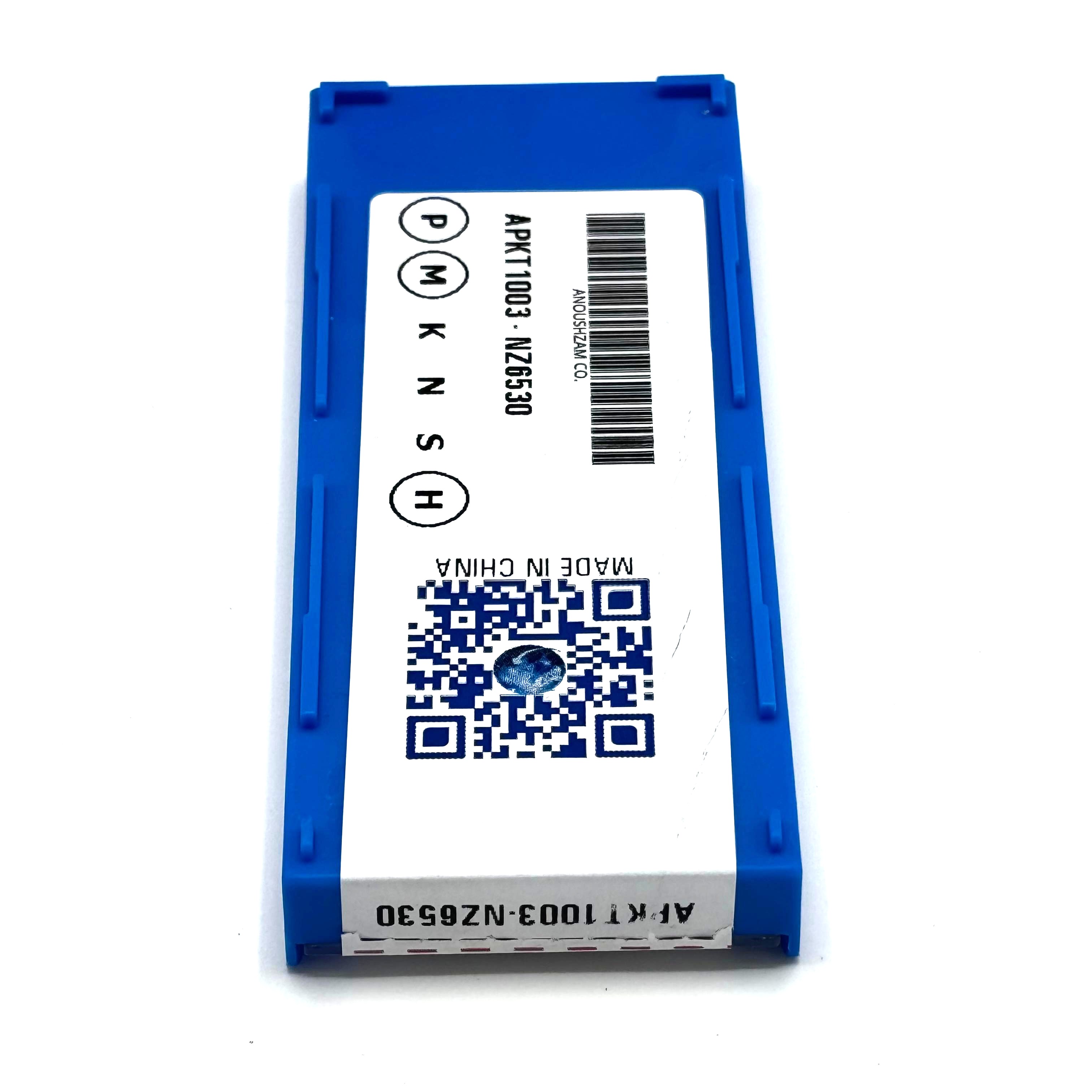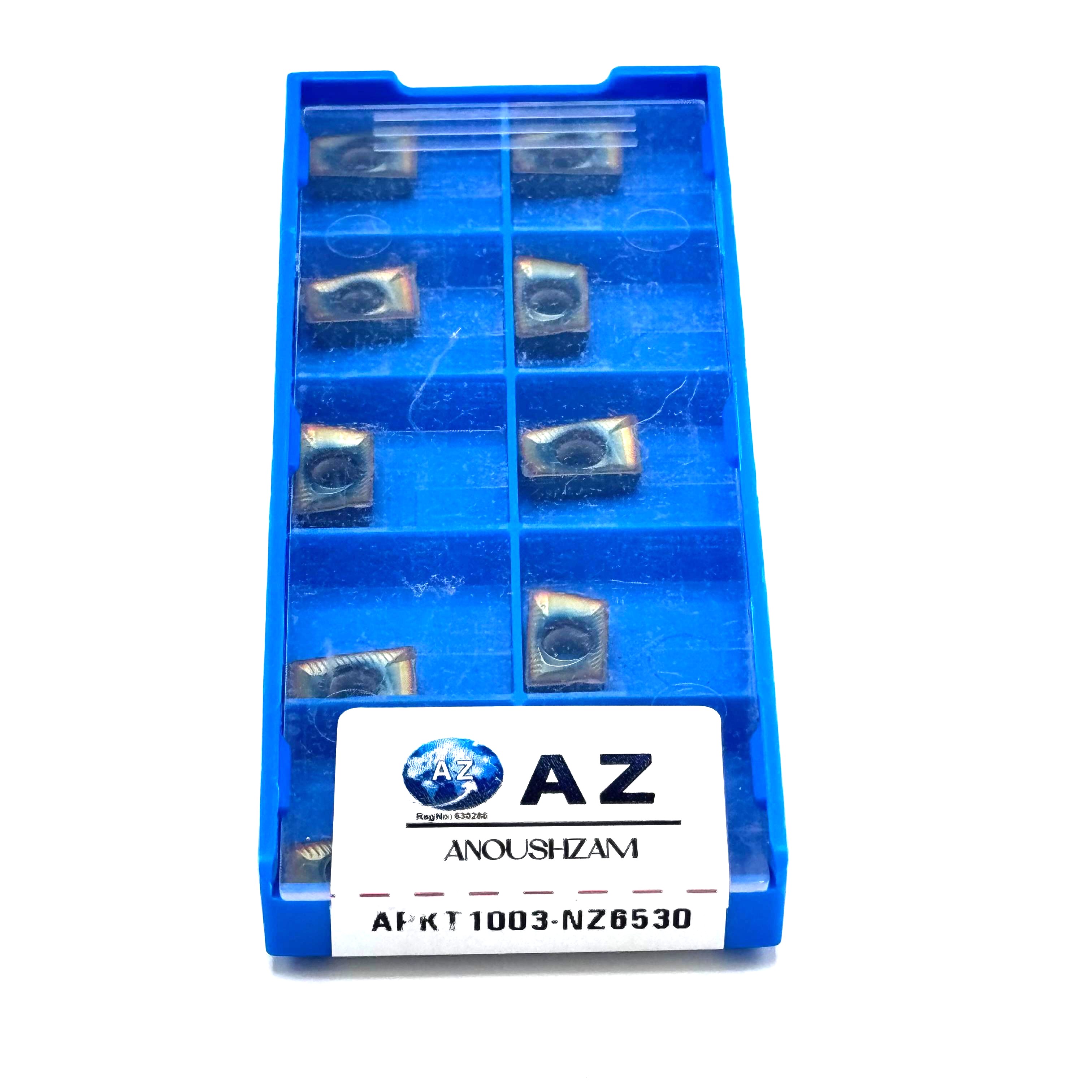اینسرت تراشکاری یا الماس تراشکاری برندAZ مدل APKT1003 NZ6530 اصلی و با کیفیت . قابلیت تراشکاری برای آلیاژ های فولاد استیل ضد زنگ و فولاد سختکاری شده تا 60 راکول را دارد.این الماس 1 طرف براده شکن دارد و قابلیت استفاده از 2 سر ان مهیا میباشد. این الماس از متریال درجه اول ساخته شده و با تضمین در بهره وری بین 50 الی 90% بیشتر نسبت به رقبای هم رده خود به فروش میرسد.