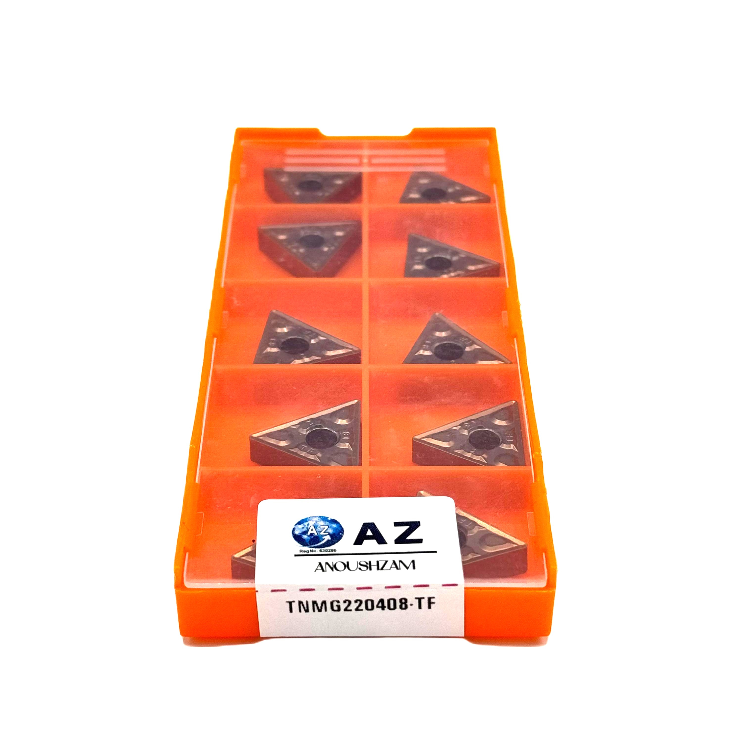 اینسرت تراشکاری یا الماس تراشکاری برندAZ مدل TNMG220408-TF TC9110 اصلی و با کیفیت . قابلیت تراشکاری برای آلیاژ های فولاد استیل ضد زنگ و فولاد سختکاری شده تا 50 راکول را دارد.این الماس 2 طرف براده شکن دارد و قابلیت استفاده از 6 سر ان مهیا میباشد. این الماس از متریال درجه اول ساخته شده و با تضمین در بهره وری بین 50 الی 90% بیشتر نسبت به رقبای هم رده خود به فروش میرسد.